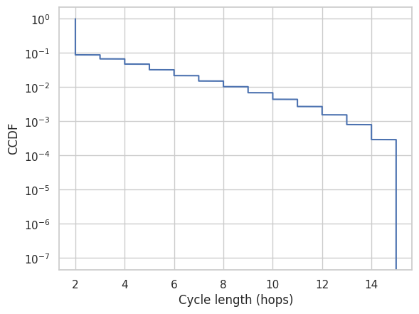 These plots present the Complementary Cumulative Distribution Functions (CCDFs) of both cycle length and cycle duration, highlighting the distribution, frequency, and relative prevalence of trading temporal cycle detected.